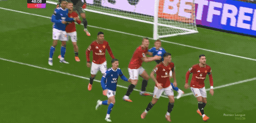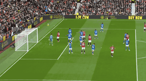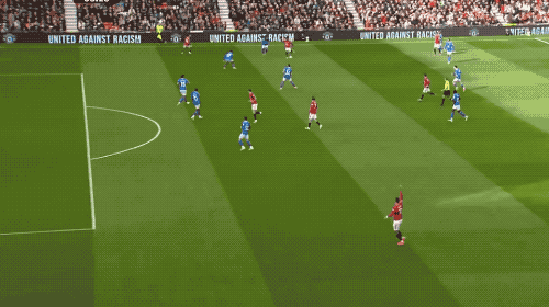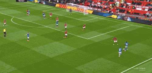 VAR介入,现场球迷相当紧张,裁判回看过后认定没有点球。半场结束,曼联两球领先。