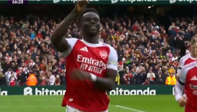 面对西汉姆,赖斯上半场补射破门,为阿森纳首开纪录。比赛的第66分钟,迪乌夫禁区线撞倒廷贝尔,主裁判判罚点球,萨卡主罚点球破门,2比0!