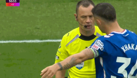 在主裁判宣布自己的决定之后,扎卡被激怒,对着主裁判怒吼。上半场结束之后,休姆也再次走到主裁判身边质疑这次判罚。